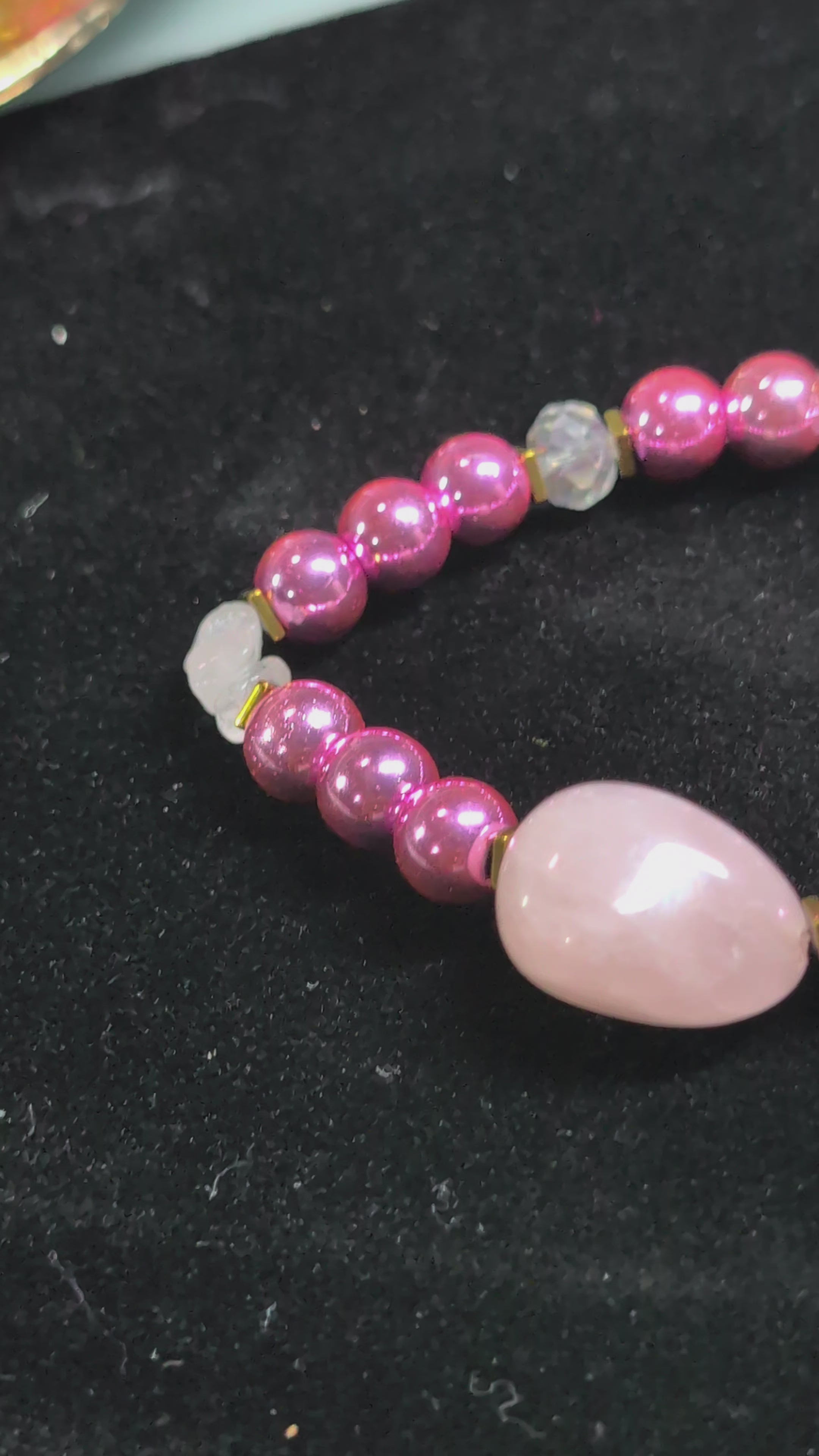 Pink beads symbolize compassion and nurturing, while rose quartz enhances emotional clarity and love. This combination awakens your inner radiance, boosts self-confidence, and attracts meaningful connections.
